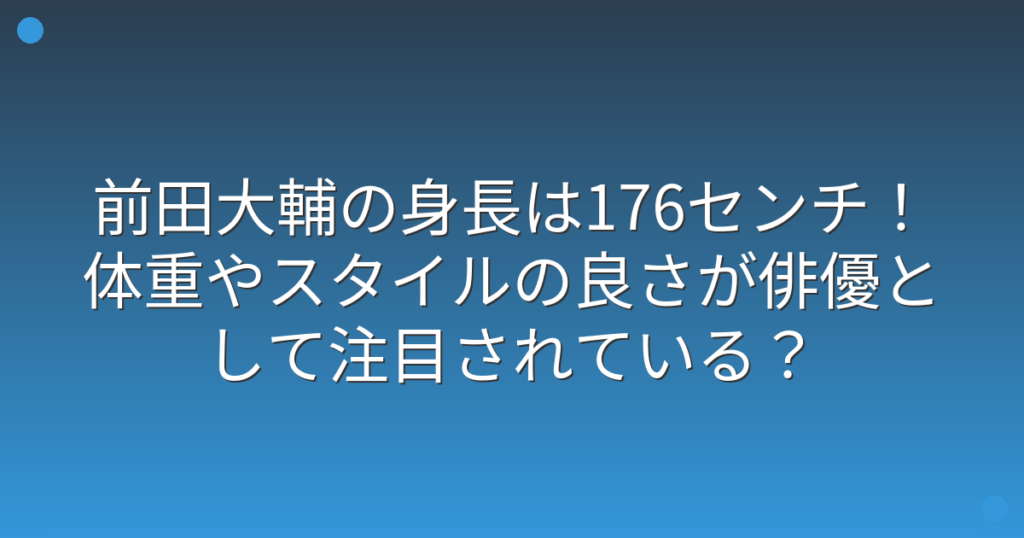俳優として活躍する前田大輔さんの身長が気になる方も多いのではないでしょうか。 スタイルの良さも注目されている前田大輔さんですが、実際の身長や体型はどうなのでしょうか。 そこで今回は、前田大輔さんの身長や体重、スタイルについて詳しく見ていき...