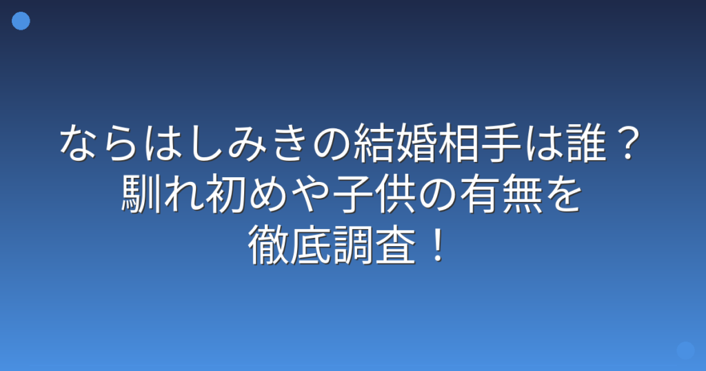ならはしみきの結婚相手は誰?馴れ初めや子供の有無を徹底調査!