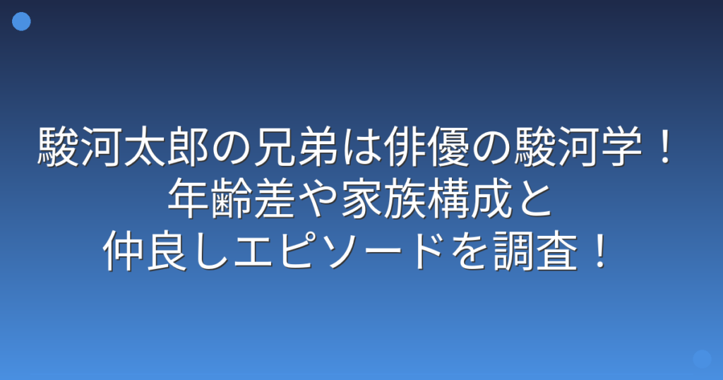駿河太郎の兄弟は俳優の駿河学!年齢差や家族構成と仲良しエピソードを調査!