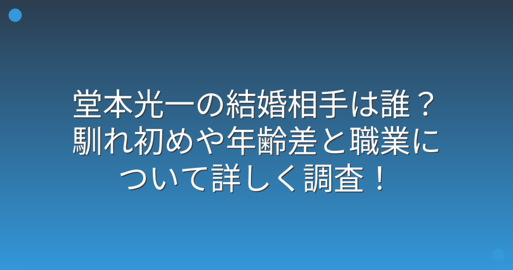 KinKi Kidsの堂本光一さんの結婚が話題になっていますね。 長年ファンから愛されてきた堂本光一さんですが、結婚相手について気になっている方も多いのではないでしょうか。 そこで今回は、堂本光一さんの結婚相手は誰なのか、馴れ初めや年齢差、職業につ... -