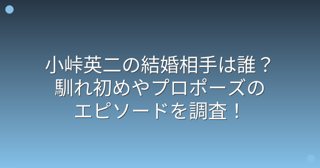 お笑いコンビ「バイきんぐ」のツッコミ担当として活躍する小峠英二さんの結婚について、多くの方が関心を持っていますね。 テレビで見ない日はないほど人気の小峠英二さんですが、プライベートな結婚生活についてはあまり知られていません。 そこで今回は... -