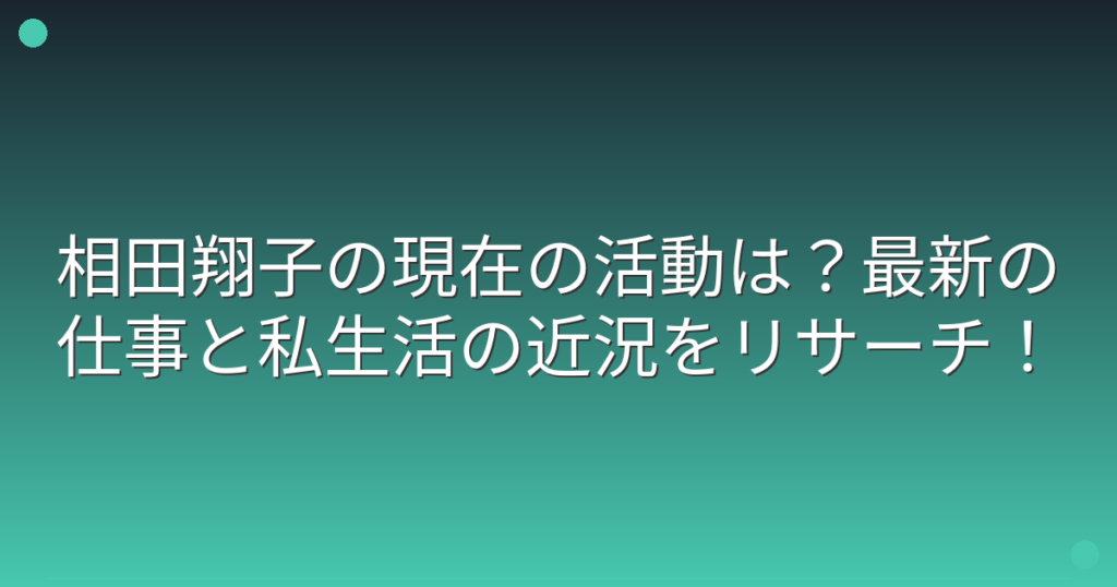 1980年代後半から1990年代にかけてアイドルユニット「Wink」のメンバーとして一世を風靡した相田翔子さん。 デビューから30年以上が経過した現在、相田翔子さんがどのような活動をされているのか気になる方も多いのではないでしょうか。 そこで今回は、相... -