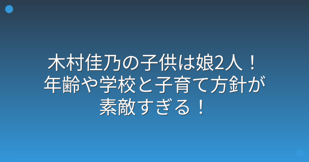 女優として活躍する木村佳乃さんの子供について、ファンの間で関心が高まっていますね。 美しい容姿と確かな演技力で多くの作品に出演している木村佳乃さんですが、プライベートではどのような子育てをしているのでしょうか。 そこで今回は、木村佳乃さん... -