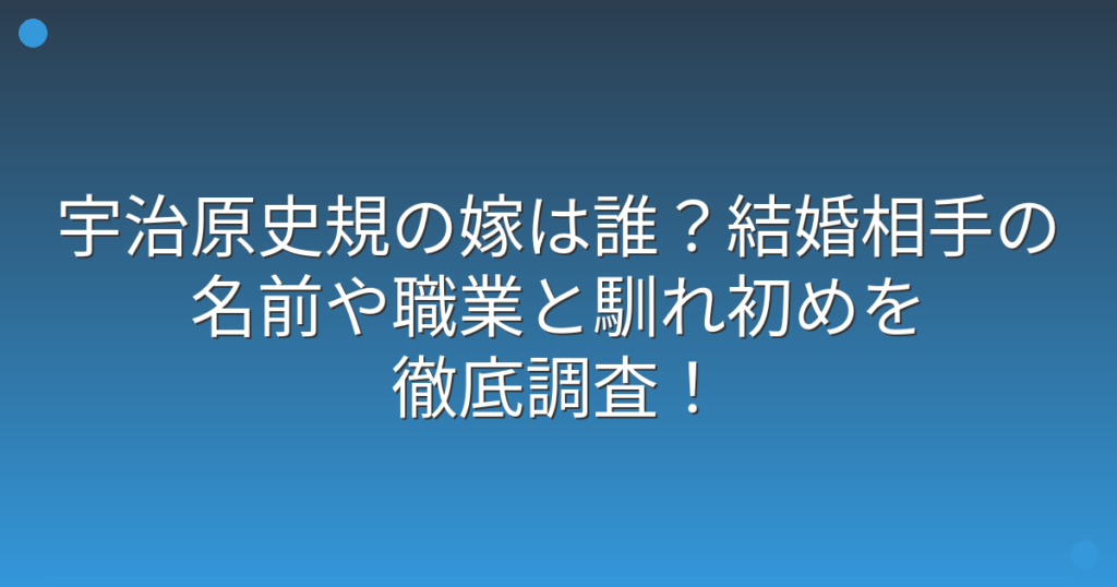 宇治原史規の嫁は誰?結婚相手の名前や職業と馴れ初めを徹底調査!