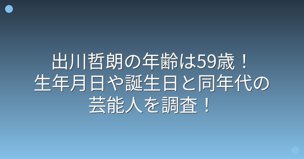 バラエティ番組で大活躍中の出川哲朗さんですが、その年齢が気になる方も多いのではないでしょうか。 いつも元気いっぱいで若々しい出川哲朗さんですが、実際には何歳なのか、生年月日や誕生日についても知りたいですよね。 そこで今回は、出川哲朗さんの... -
