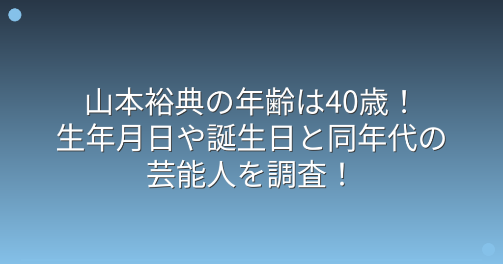 山本裕典の年齢は40歳!生年月日や誕生日と同年代の芸能人を調査!