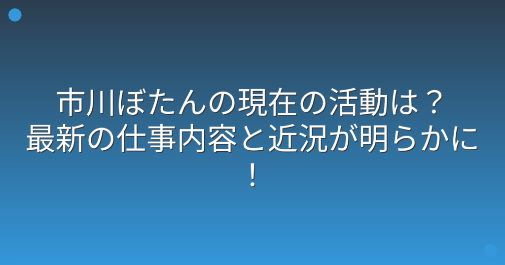 市川ぼたんの現在の活動は?最新の仕事内容と近況が明らかに!