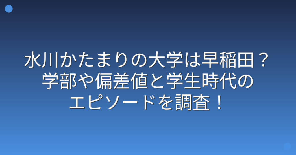 水川かたまりの大学は早稲田?学部や偏差値と学生時代のエピソードを調査!