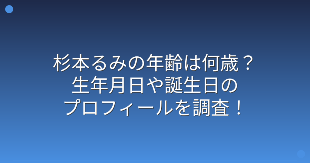 杉本るみの年齢は何歳?生年月日や誕生日のプロフィールを調査!