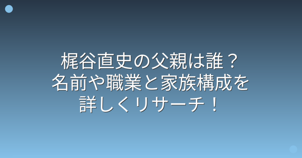 梶谷直史の父親は誰?名前や職業と家族構成を詳しくリサーチ!