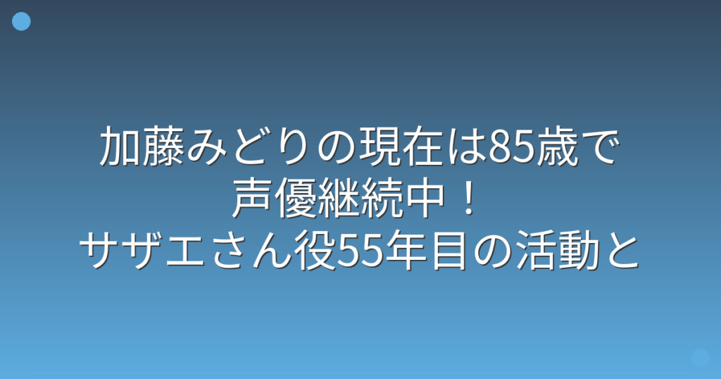 加藤みどりの現在は85歳で声優継続中!サザエさん役55年目の活動と私生活が明らかに!