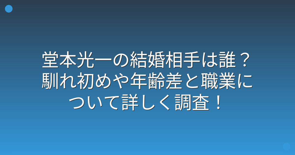 そこで今回は、堂本光一さんの結婚相手は誰なのか、馴れ初めや年齢差、職業について詳しく見ていきましょう!