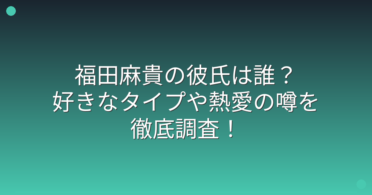 福田麻貴の熱愛の噂を調査
