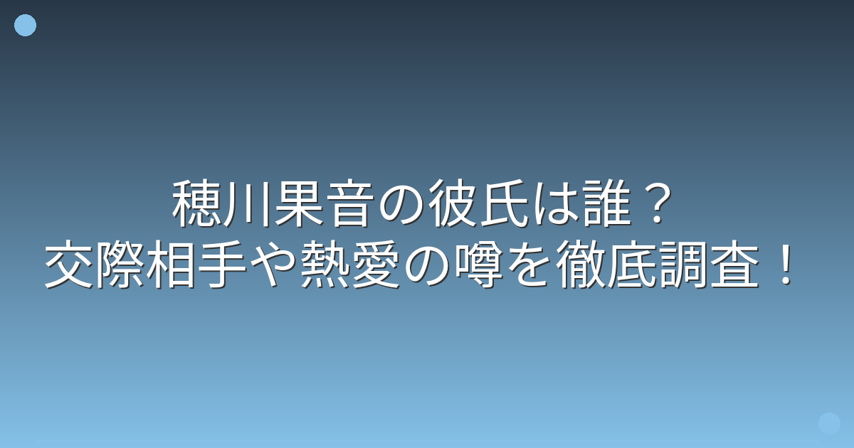 調査の結果、現時点では穂川果音さんの彼氏に関する具体的な情報は一切公表されておらず、熱愛報道やデートの目撃情報も確認されていません。