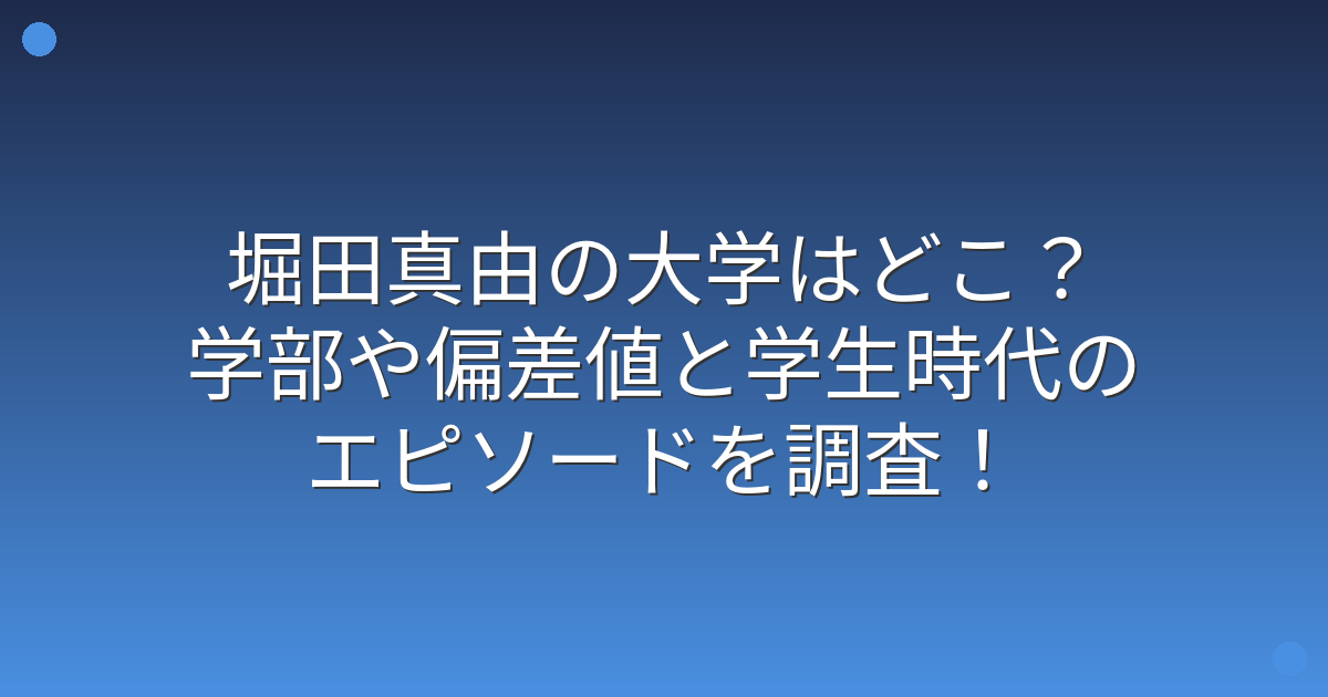 堀田真由さんの大学については、残念ながら公式に公表されておらず、学部や偏差値についても具体的な情報は見つかりませんでした。