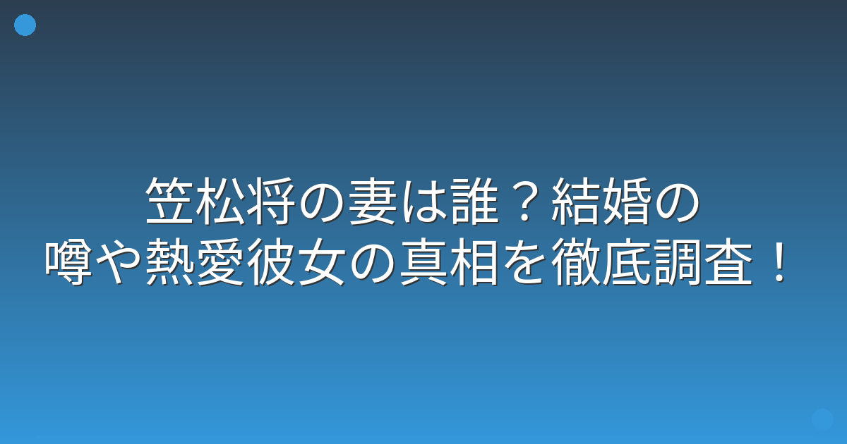 2025年11月現在、笠松将さんは結婚しておらず妻はいません。