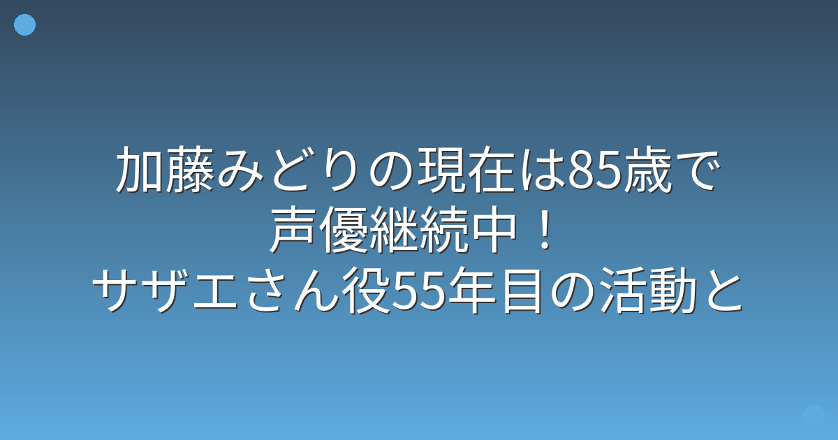 1969年の放送開始から半世紀以上にわたってサザエさん役を演じ続けている加藤みどりさんですが、現在の年齢や活動状況について気になる方も多いのではないでしょうか。