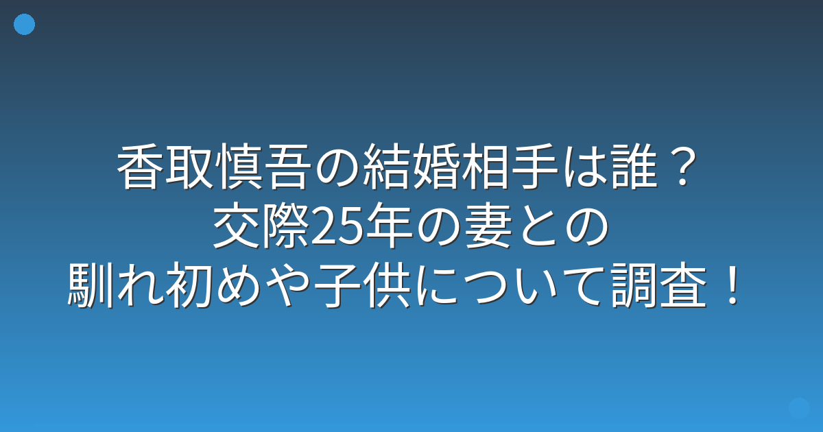 そこで今回は、香取慎吾さんの結婚相手や馴れ初め、子供の有無について詳しく見ていきましょう!