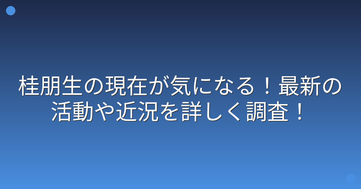 そこで今回は、桂朋生さんの現在の活動状況や最新情報について詳しく見ていきましょう!