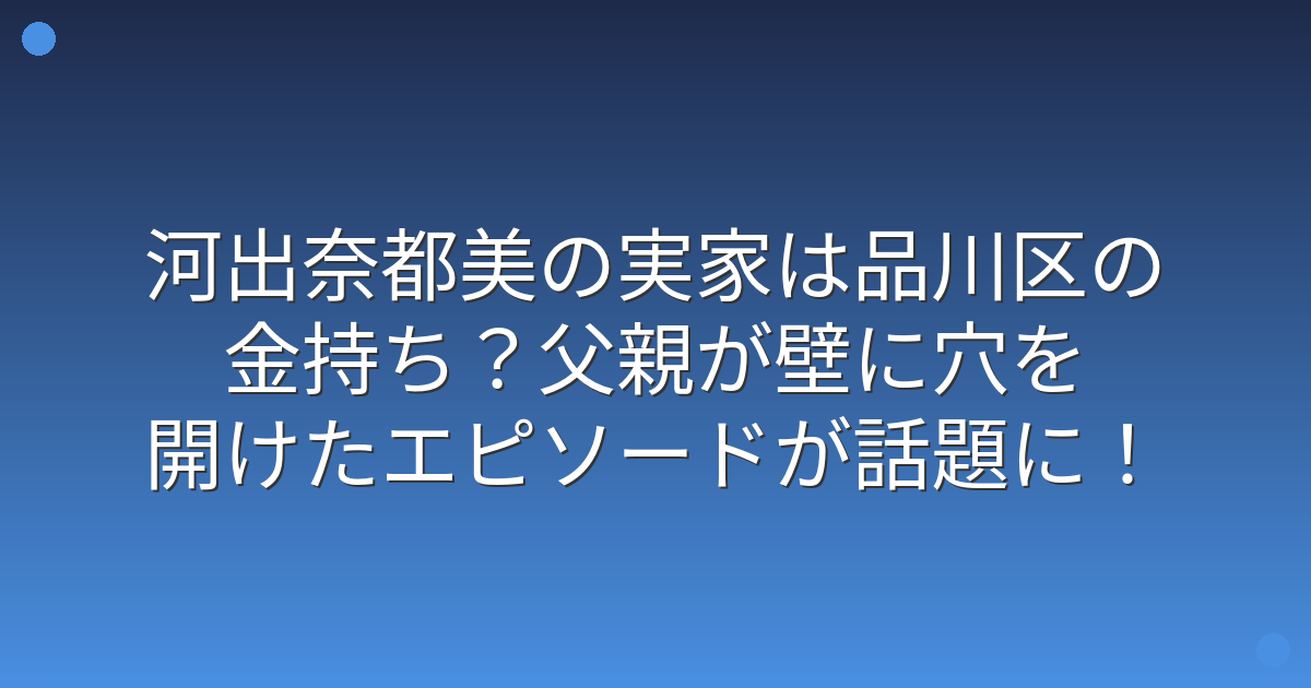 特に父親が壁に穴を開けたというユニークなエピソードや、実家が品川区にあるという情報、さらには名門家系出身という噂まで、様々な情報が注目を集めています。