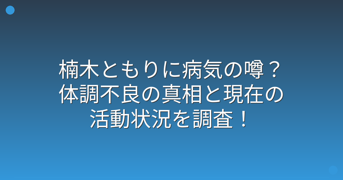 楠木ともりさんに関する病気の噂について、まず結論からお伝えすると、公式に病気であることが発表された事実は確認できていません。