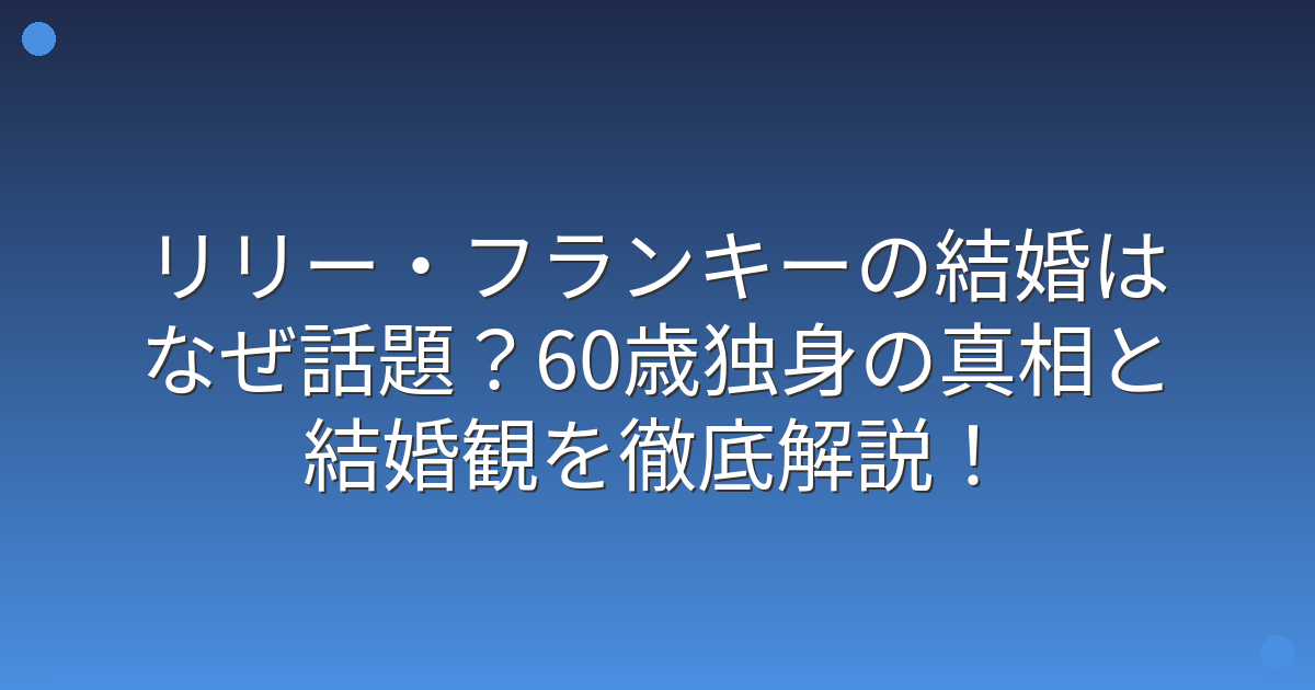芸能界きっての独身貴族として知られるリリー・フランキーさんの結婚について、多くの注目が集まっています。