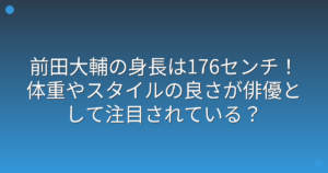 アイドルグループのメンバーとしても、俳優としても、この身長は非常に映える体格と言えるでしょう。
