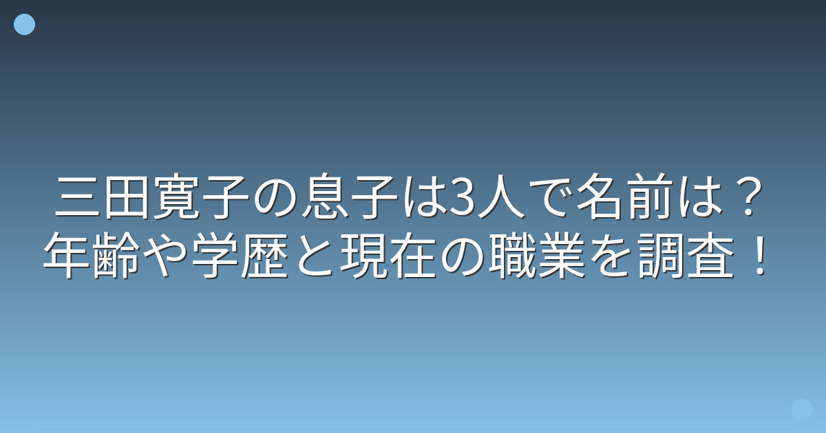 三田寛子さんの息子さんたちの年齢についてですが、2024年現在、長男の宗生さんは34歳、次男の橋吾さんは32歳、三男の宗太郎さんは31歳になられます。