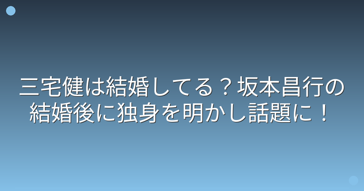 同じV6メンバーだった坂本昌行さんが結婚を発表したことを受けて、三宅健さんの結婚状況に注目が集まっています。