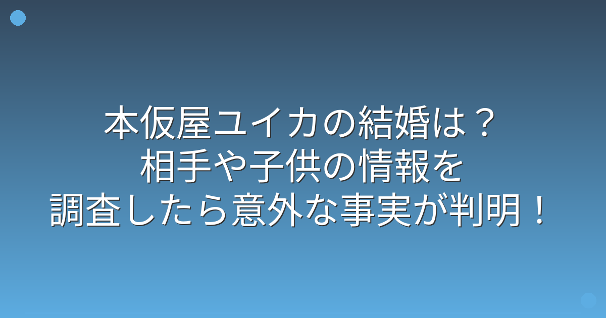 本仮屋ユイカさんは現在独身のため、結婚相手や子供に関する情報は存在しません。