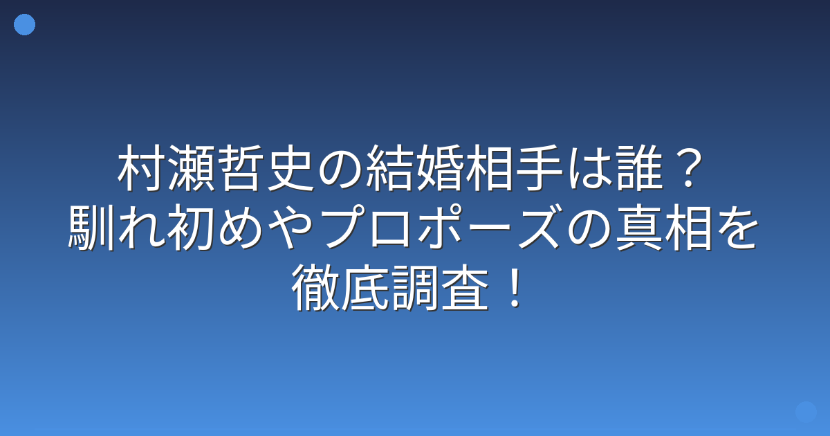 村瀬哲史さんの馴れ初めやプロポーズについても、ファンの関心が高まっています。