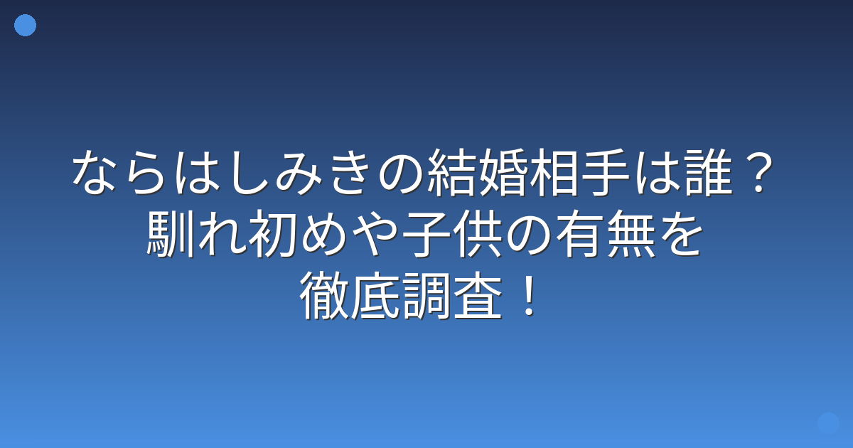 ならはしみきさんの結婚について調査したところ、現在のところ結婚されているという情報は確認できませんでした