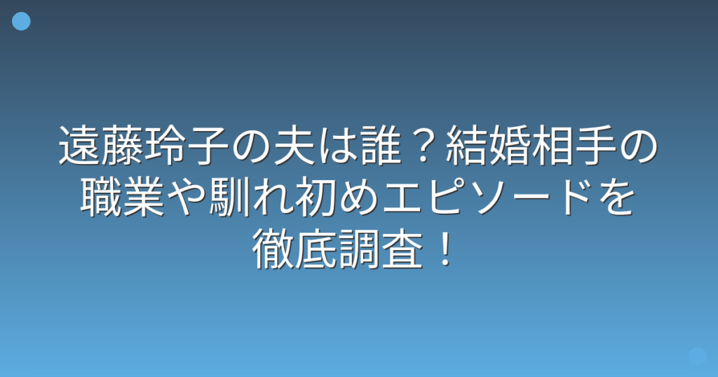 遠藤玲子の夫は誰?結婚相手の職業や馴れ初めエピソードを徹底調査!