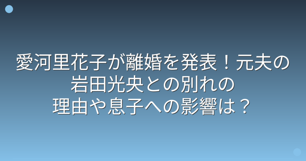 愛河里花子が離婚を発表!元夫の岩田光央との別れの理由や息子への影響は?