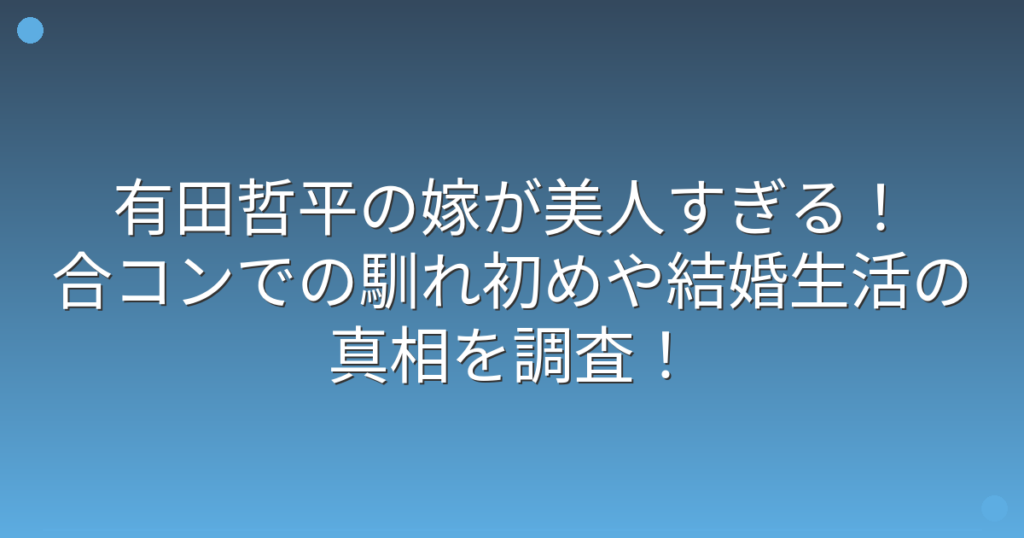 有田哲平の嫁が美人すぎる!合コンでの馴れ初めや結婚生活の真相を調査!