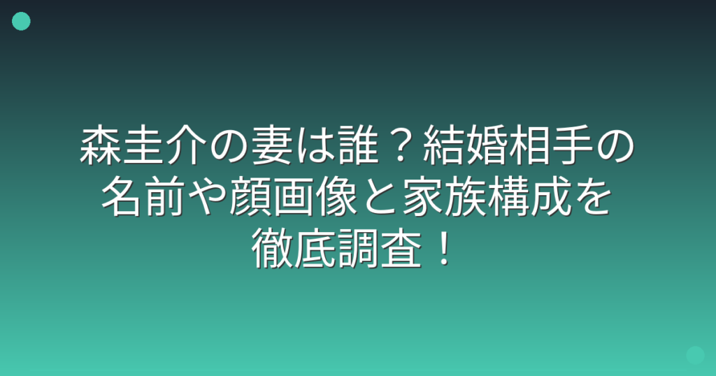森圭介の妻は誰?結婚相手の名前や顔画像と家族構成を徹底調査!