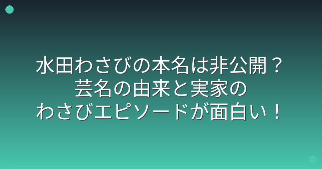 水田わさびの本名は非公開?芸名の由来と実家のわさびエピソードが面白い!