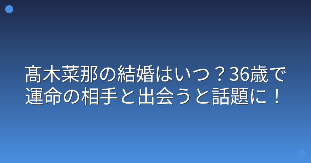 髙木菜那の結婚はいつ?36歳で運命の相手と出会うと話題に!