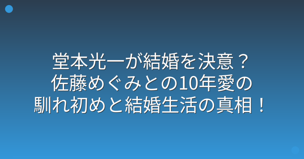 KinKi Kidsの堂本光一さんと女優の佐藤めぐみさんの結婚が話題になっていますね。 2025年10月に『女性セブン』が報じたこのニュースは、佐藤さんの芸能界引退と共に大きな注目を集めています。 そこで今回は、堂本光一さんの結婚相手や馴れ初め、そして結...