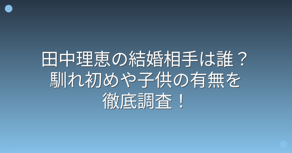 田中理恵の結婚相手は誰?馴れ初めや子供の有無を徹底調査!