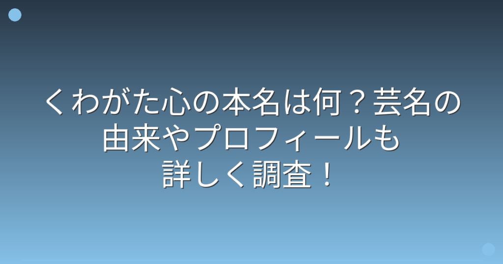 くわがた心の本名は何?芸名の由来やプロフィールも詳しく調査!