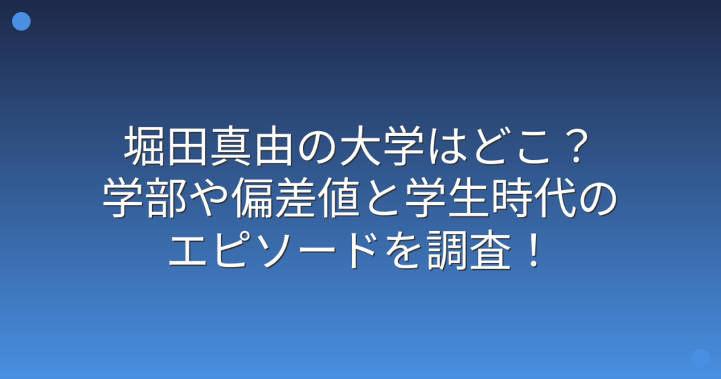 堀田真由の大学はどこ?学部や偏差値と学生時代のエピソードを調査!