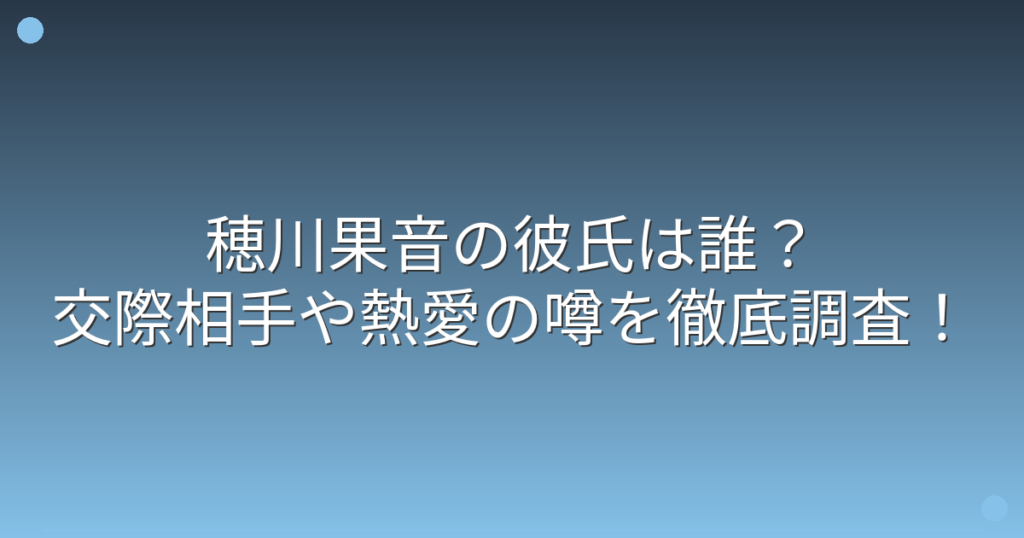 穂川果音の彼氏は誰?交際相手や熱愛の噂を徹底調査!