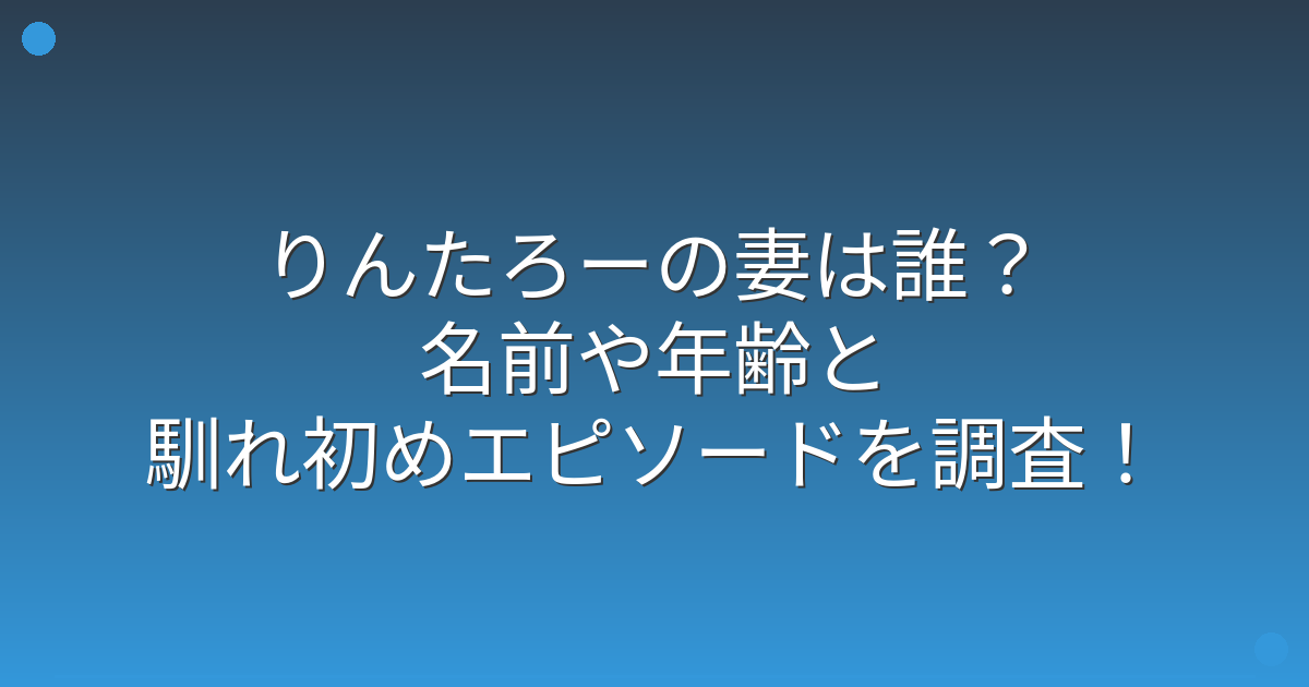 りんたろーさんの妻は一般女性で、名前や詳しいプロフィールは公表されていませんが、知人の紹介で出会い結婚されたという情報があります。