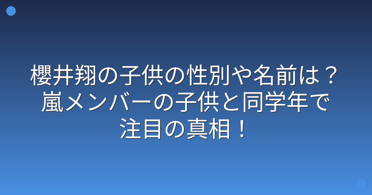 そこで今回は、櫻井翔さんの子供について、気になる性別や名前、さらに嵐メンバーの子供たちとの関係まで、詳しく見ていきましょう!