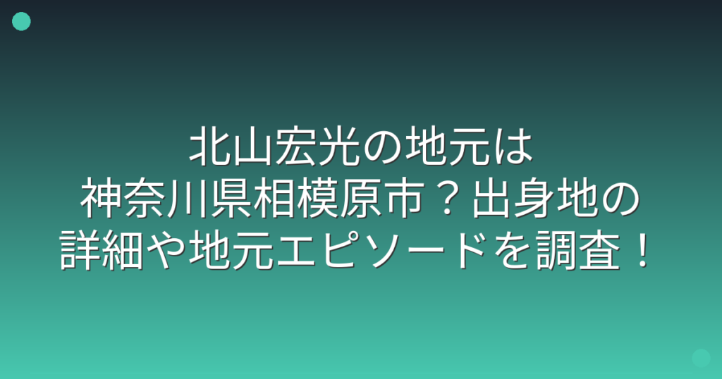 北山宏光の地元は神奈川県相模原市?出身地の詳細や地元エピソードを調査!