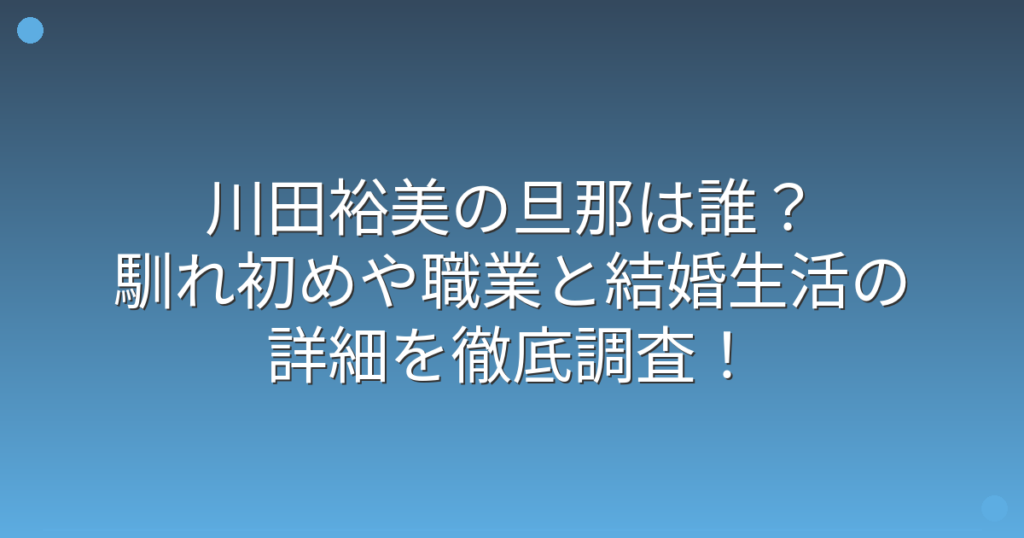 川田裕美の旦那は誰?馴れ初めや職業と結婚生活の詳細を徹底調査!