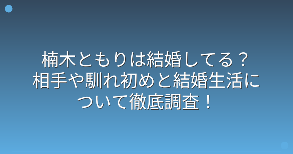 楠木ともりは結婚してる?相手や馴れ初めと結婚生活について徹底調査!