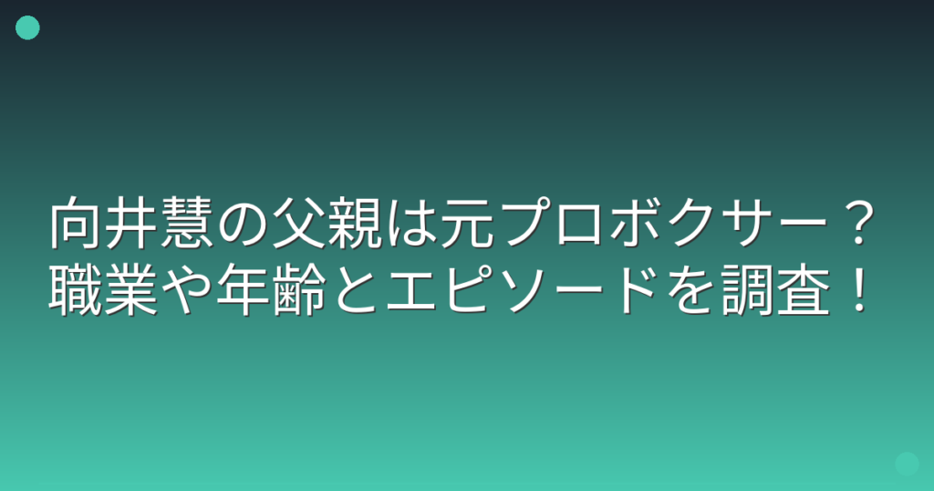向井慧の父親は元プロボクサー?職業や年齢とエピソードを調査!