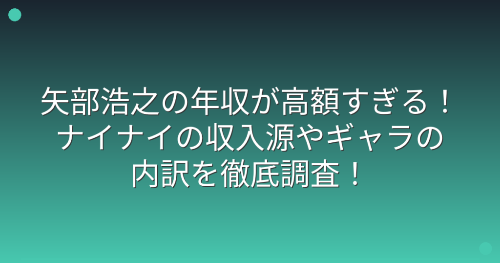 矢部浩之の年収が高額すぎる!ナイナイの収入源やギャラの内訳を徹底調査!